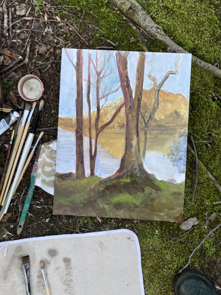 Artist statements perplex me. It’s difficult to identify an ulterior motive when all you’re doing is plopping your easel down in front of a particularly pleasing copse of trees and painting what you see. But painting is the excuse I use to look around. To stop seeing the world as something I have to navigate through in order to get errands done, and look at it as it is. To just be in it.